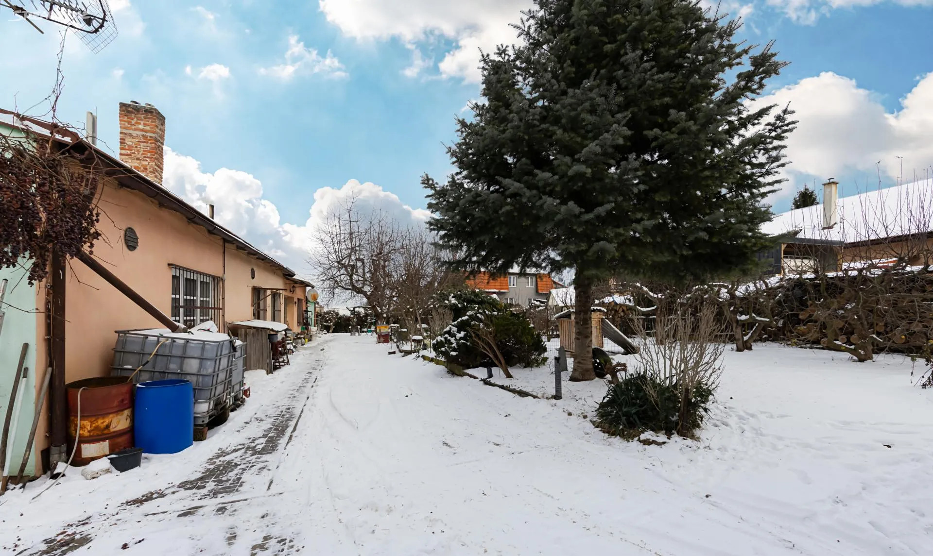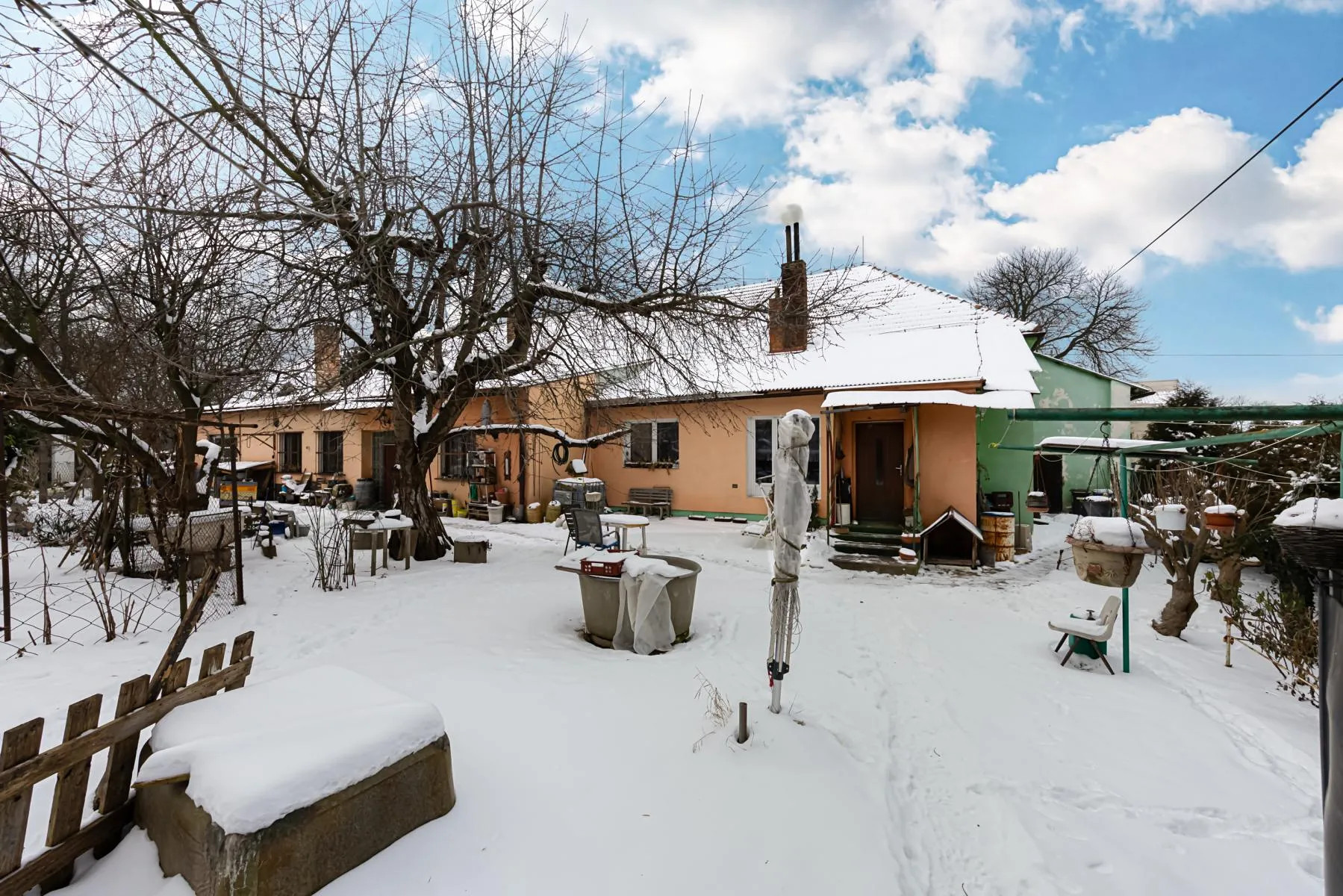 Okolí domu nabízí velký potenciál pro upravenou zahradu jež propojí interiér s exteriérem, případně výstavbu dalšího objektu.