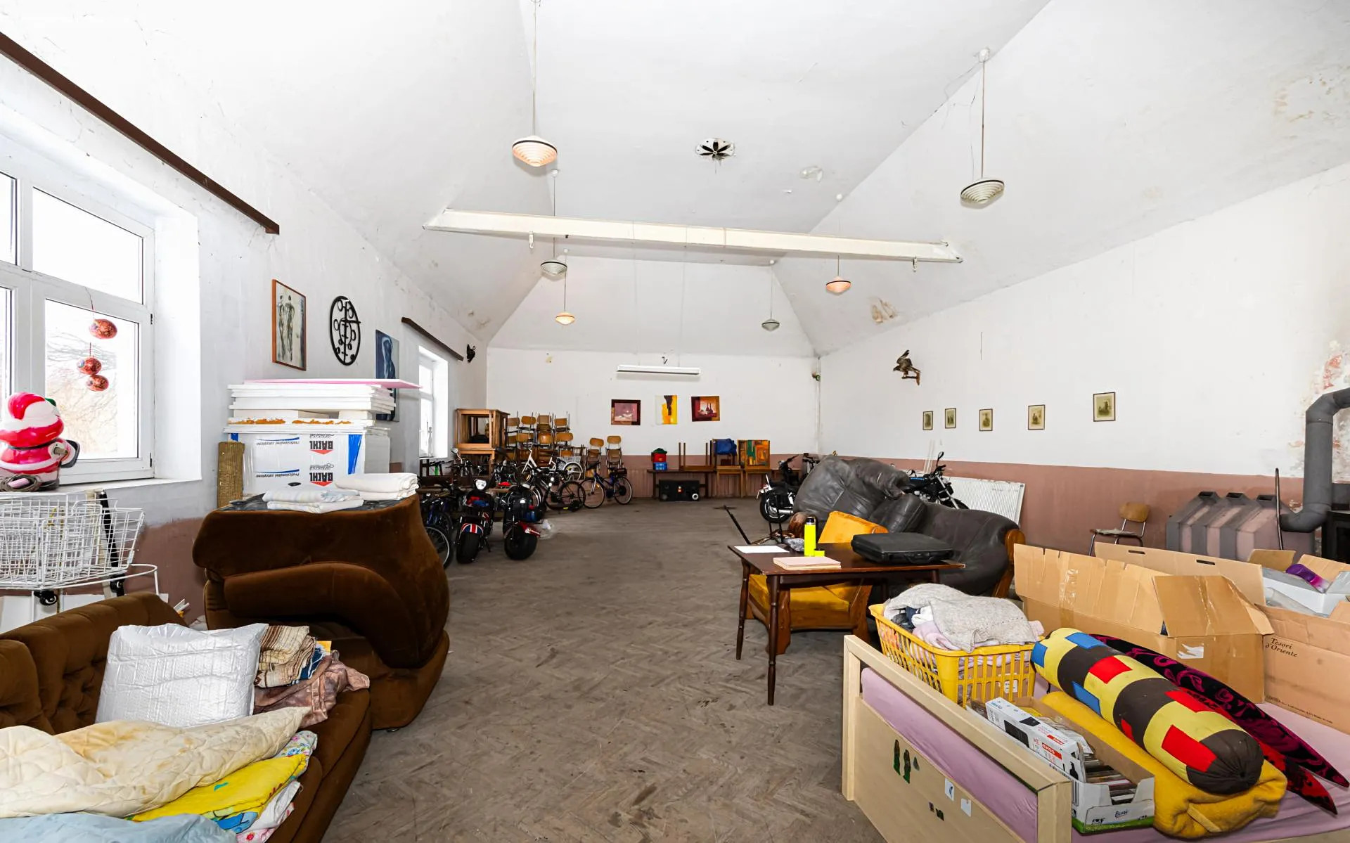 Pokud by sál nebyl využíván ke svému účelu, bylo by možné v této části s ohledem na velkou světlou výšku vložit stropní konstrukci a vytvořit další prostor v podkroví.