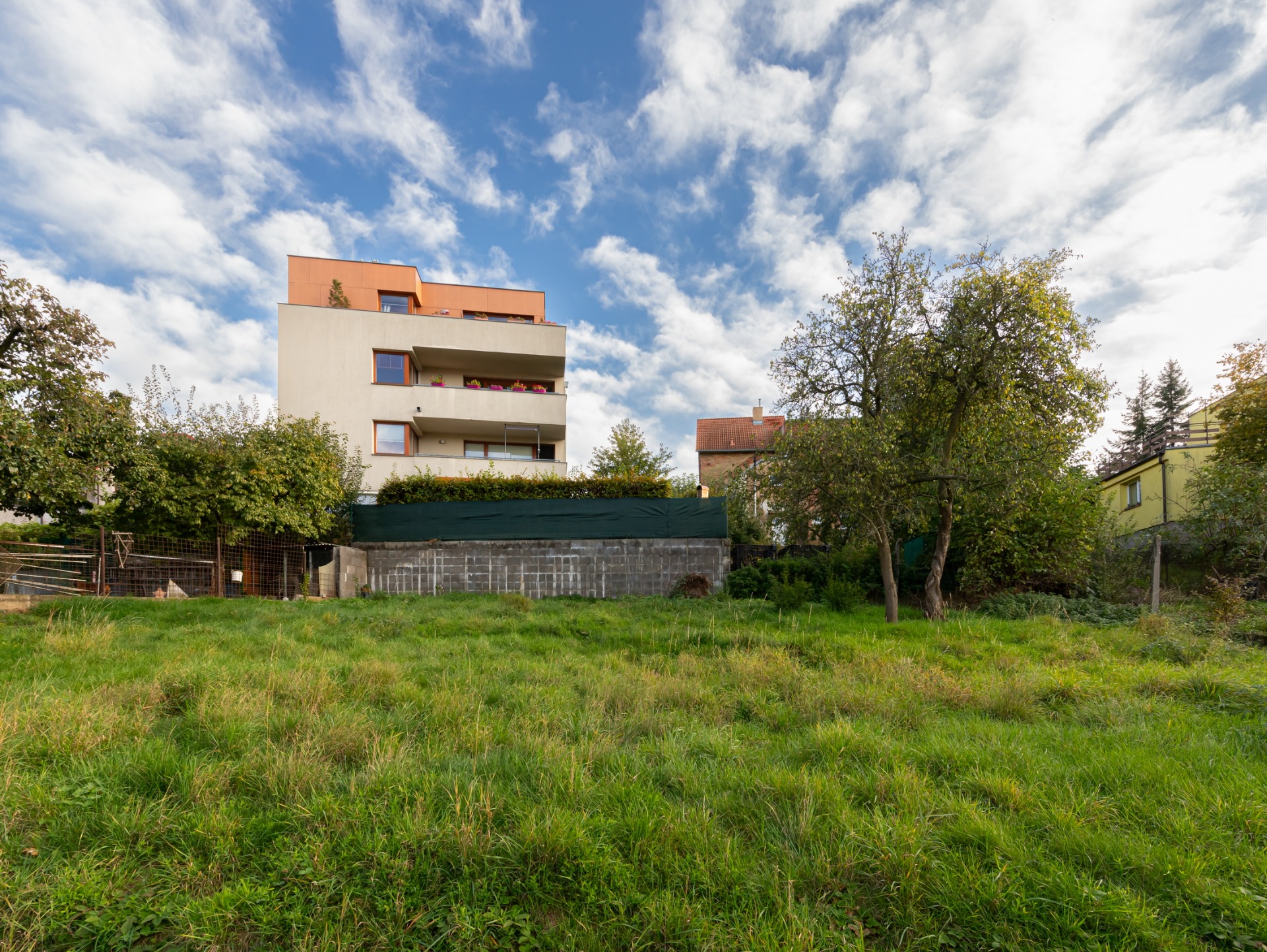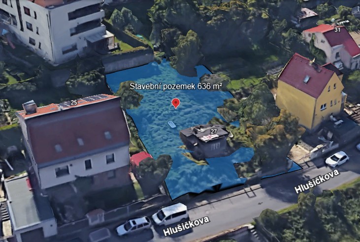 Jedná se o mírně svažitý, slunný pozemek obdélníkového tvaru ( cca 20,5x31m ) ze všech stran oplocený, situovaný v klidné zástavbě rodinných vil a menších bytových domů.
